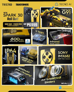 The official price of SPARK 30 is P6,999 with Bumblebee. Users can purchase the SPARK 30 during its first sale up to 40% discount price of P5,599 from 11.5 to 11.11 at TECNO Mobile PH in TikTok Shop.